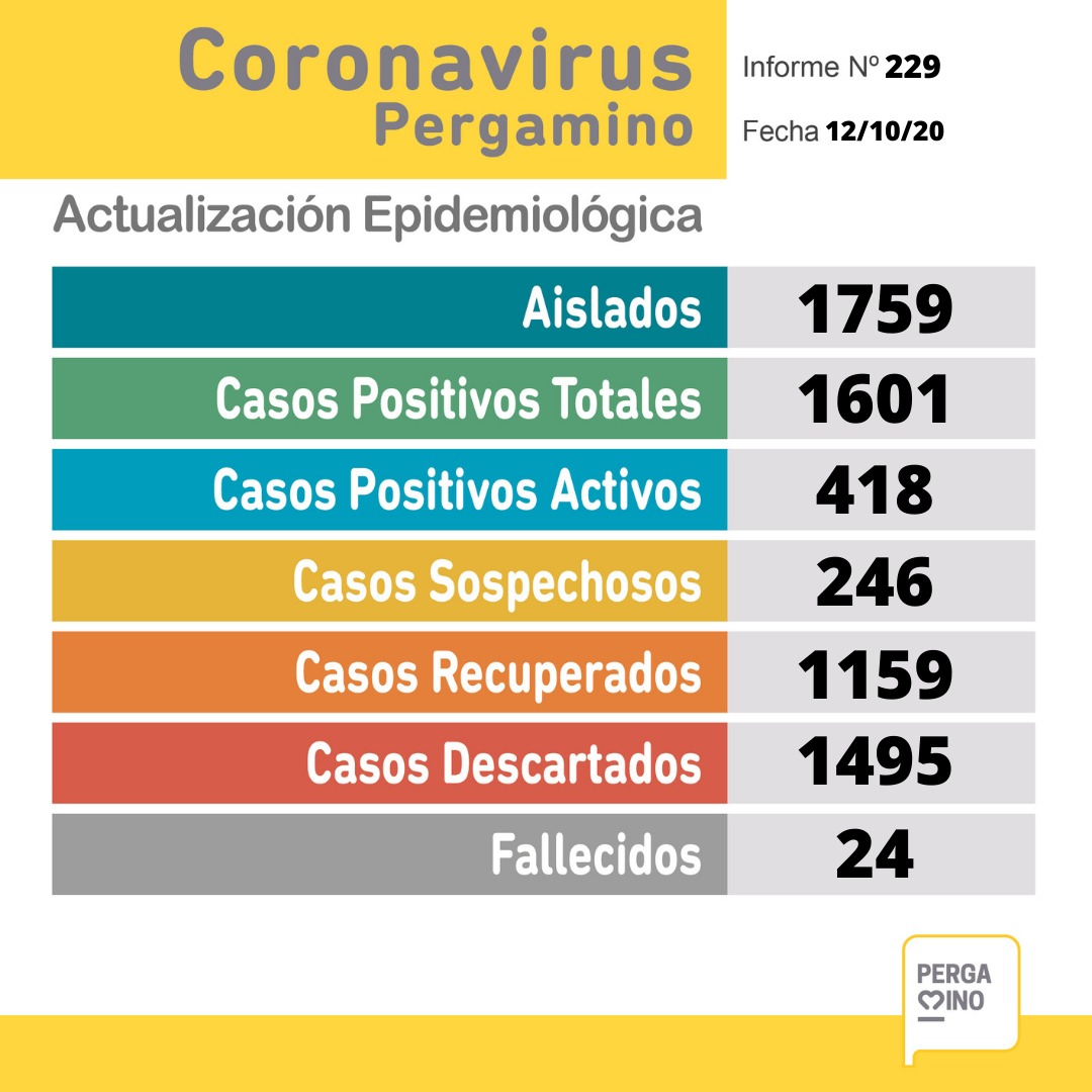 La Municipalidad, a través de la Secretaría de Salud del Partido de Pergamino, brinda el parte epidemiológico del día e informa: