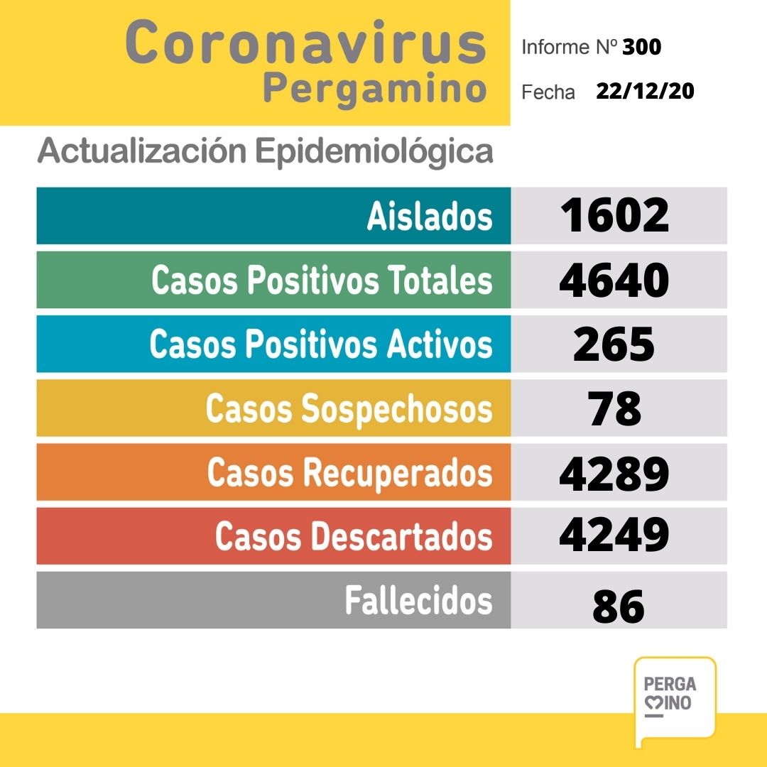 La Municipalidad, a través de la Secretaría de Salud del Partido de Pergamino, brinda el parte epidemiológico del día e informa: