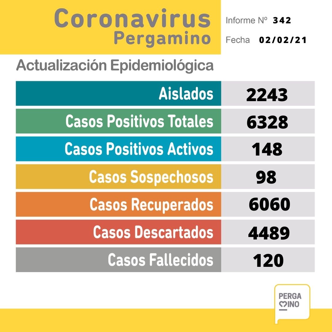 La Municipalidad, a través de la Secretaría de Salud del Partido de Pergamino, brinda el parte epidemiológico del día e informa: