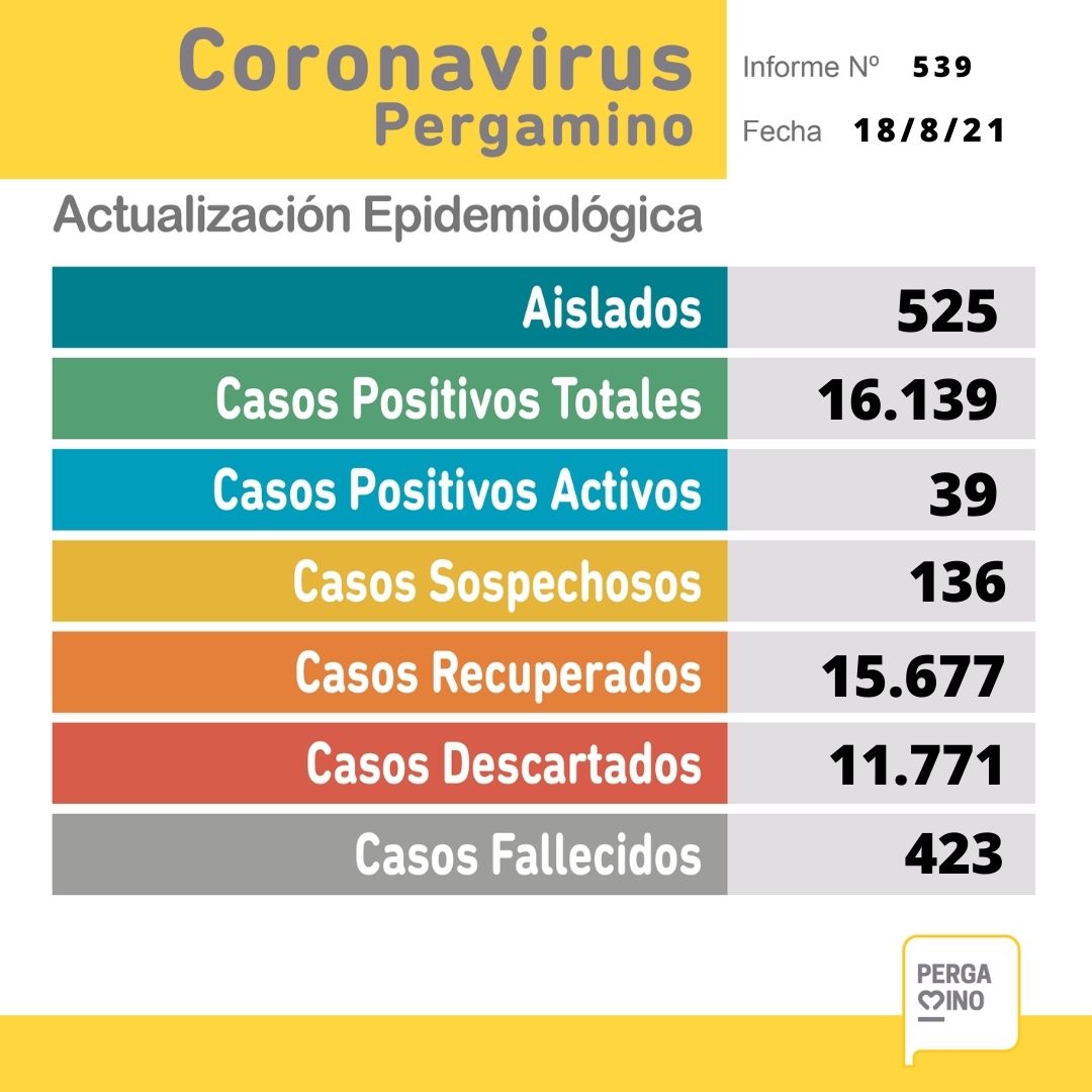 La Municipalidad, a través de la Secretaría de Salud del Partido de Pergamino, brinda el parte epidemiológico del día e informa: