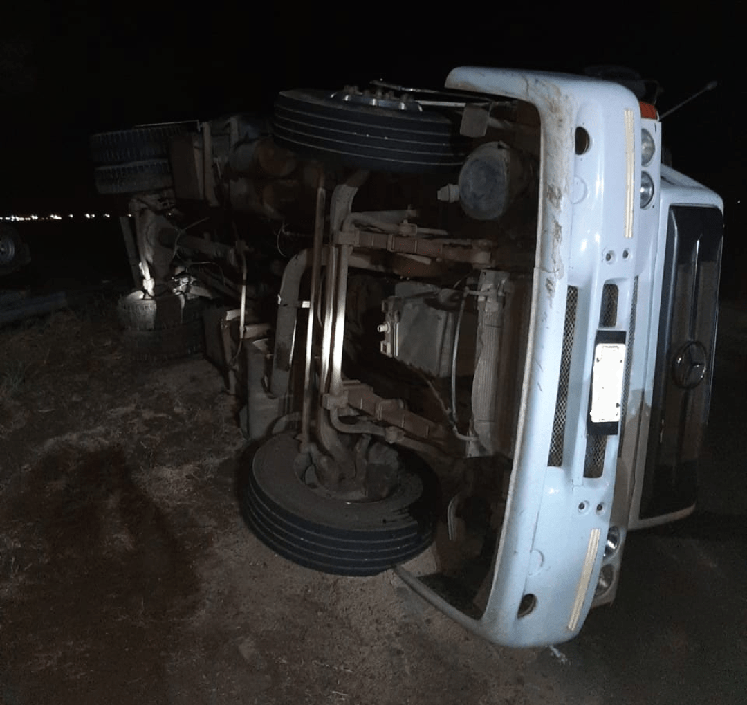 La ruta 188 a la altura de la curva de J A de la Peña fue testigo de un nuevo accidente de tránsito. En esta oportunidad, un camión Mercedes, volcó junto con su carga, dejando parte del vehículo sobre la cinta asfáltica.