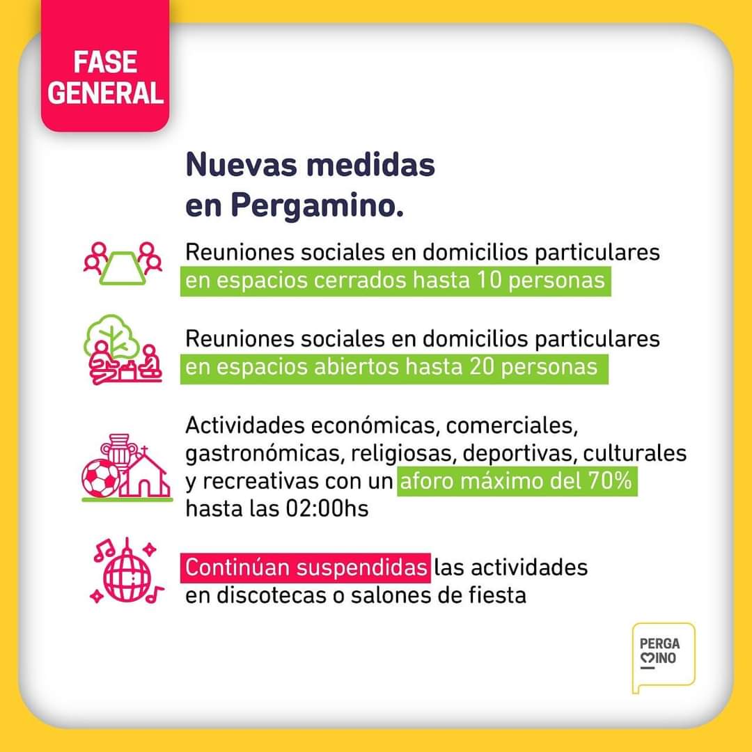 Pergamino se encuentra en Fase General. De acuerdo a esto, se disponen nuevas medidas en el Partido: