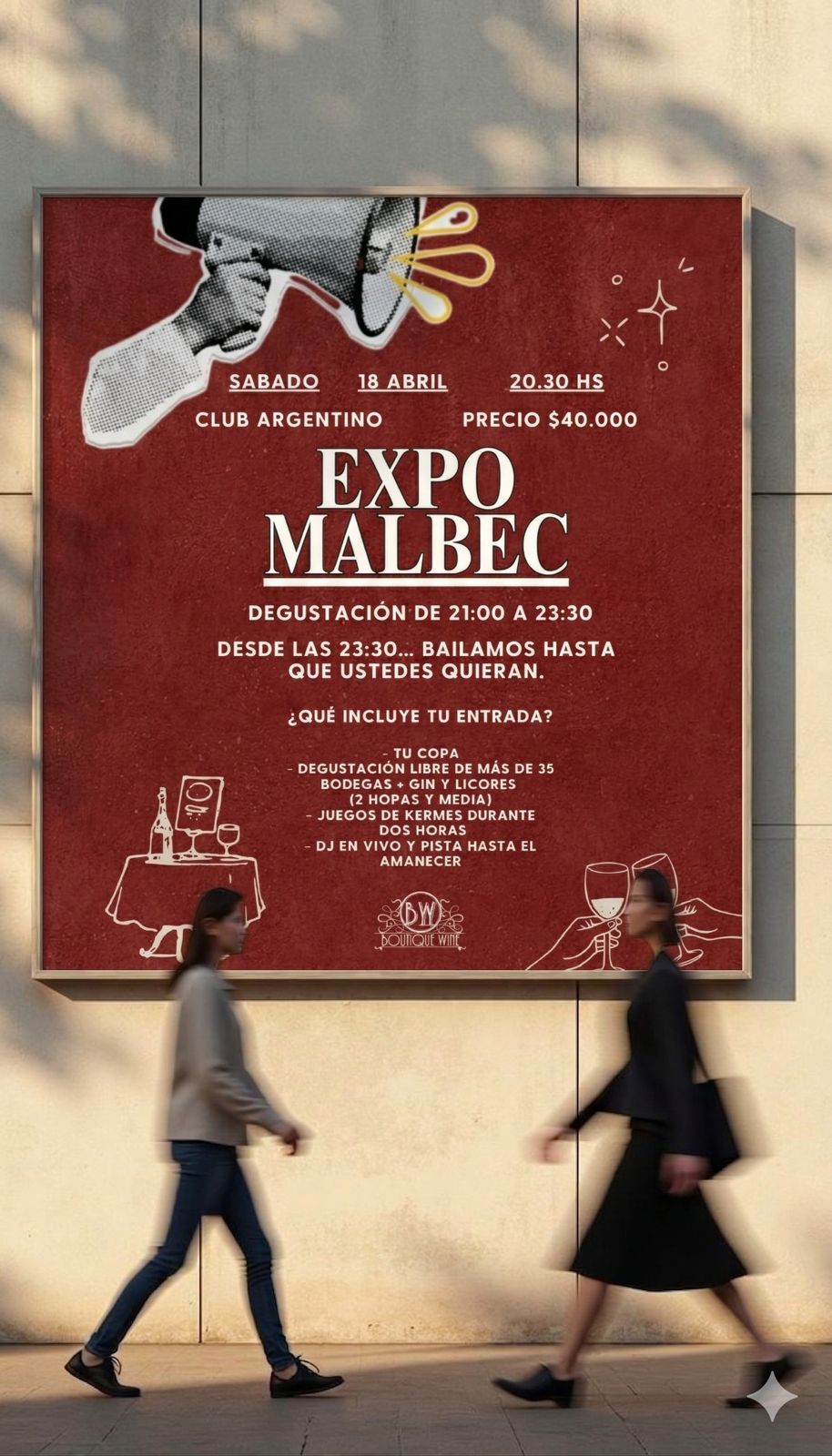 La Expo Malbec se desarrollará este sábado desde las 21 hasta las 23:30 en el Club Argentino, con la participación de más de 30 bodegas, degustaciones de gin y whisky, patio gastronómico, música y juegos de kermesse con participación libre para el público.