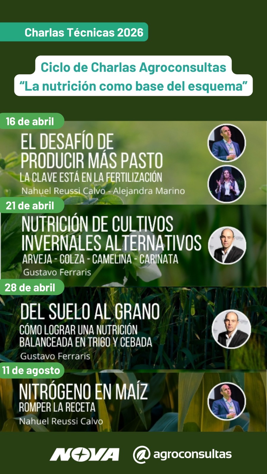 La empresa argentina Laboratorios Nova, referente en biodesarrollos y con origen en Cañada de Gómez (Santa Fe), presentó su Ciclo de Charlas Técnicas 2026, una propuesta dirigida a productores, asesores y profesionales del agro que busca fortalecer conocimientos en nutrición de cultivos y manejo eficiente del suelo.
