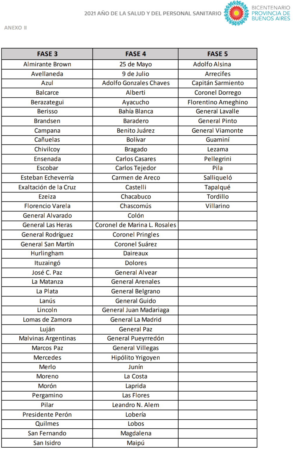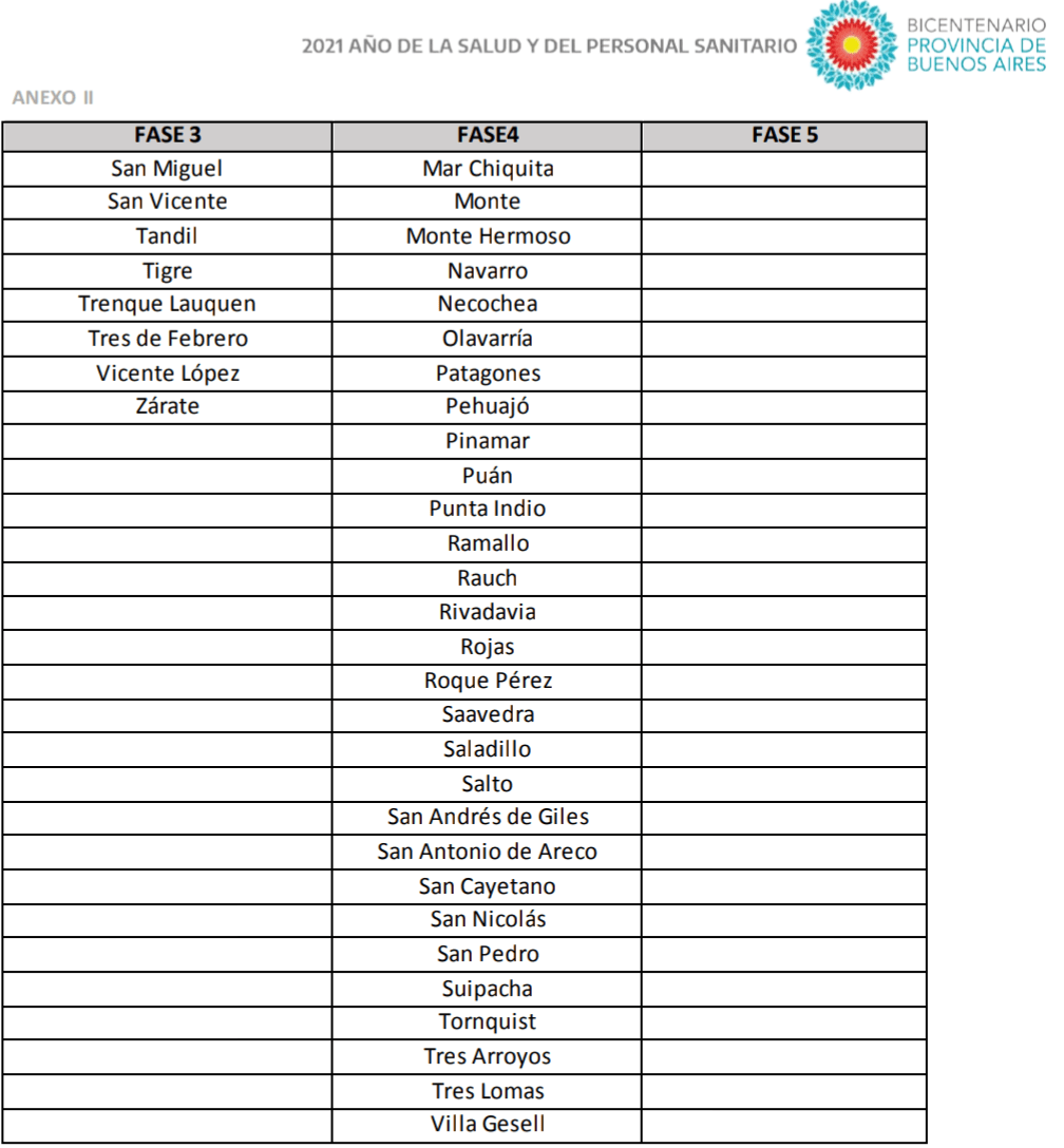 El Gobierno de la Provincia de Buenos Aires actualizó mediante el Boletín Oficial, el registro de fases por localidad.