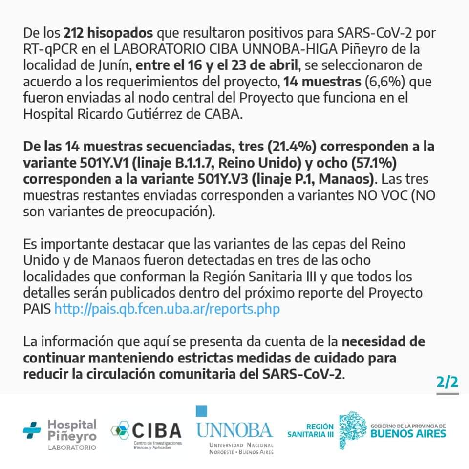 Desde Región Sanitaria III, informaron que en las localidades comprendidas por la misma, se hallaron circulación de Cepas de Manaos y Gran Bretaña.