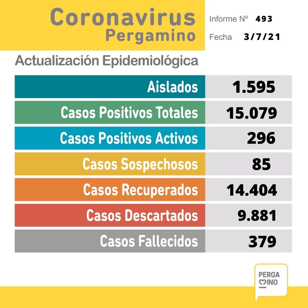 La Municipalidad, a través de la Secretaría de Salud del Partido de Pergamino, brinda el parte epidemiológico del día e informa: