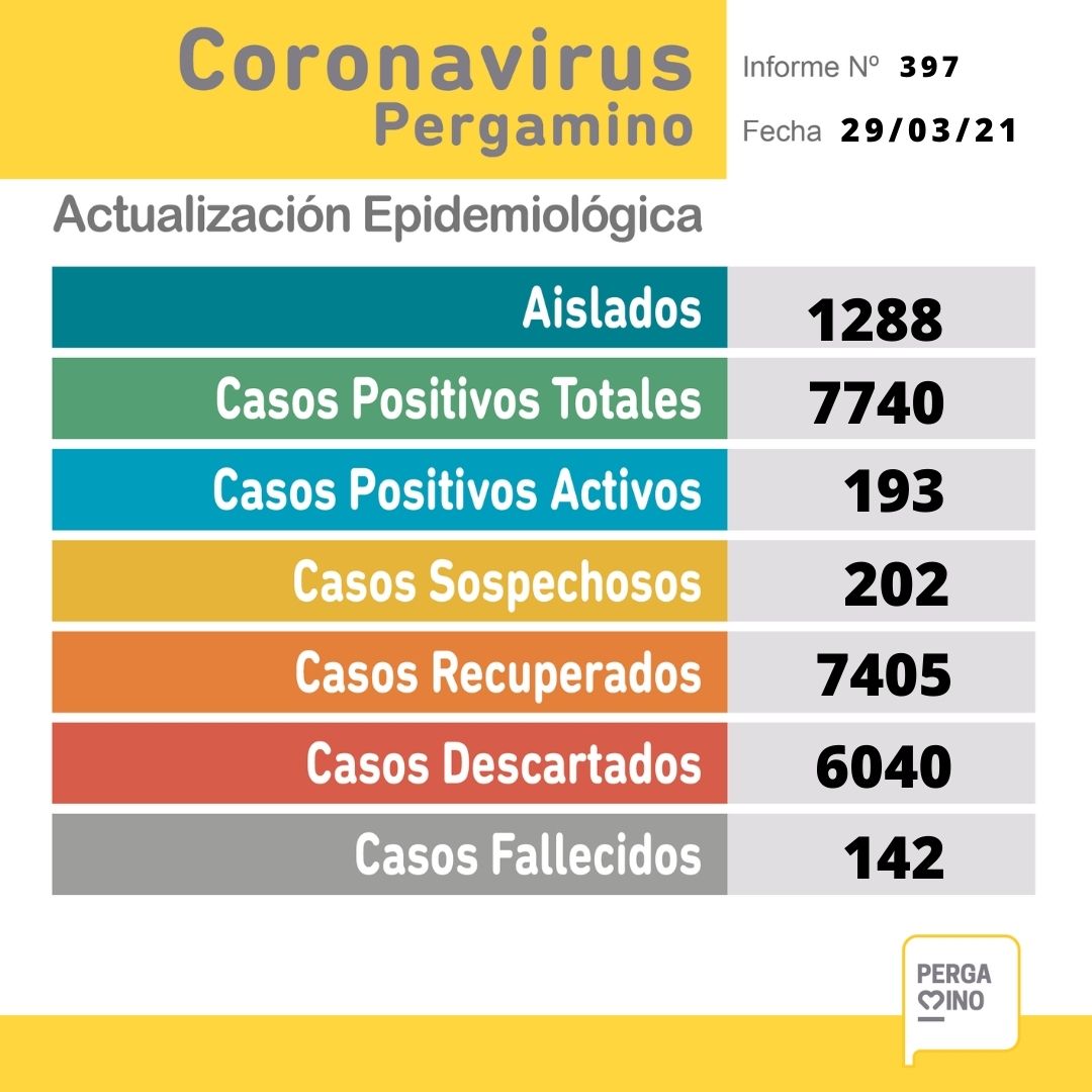 La Municipalidad, a través de la Secretaría de Salud del Partido de Pergamino, brinda el parte epidemiológico del día e informa: