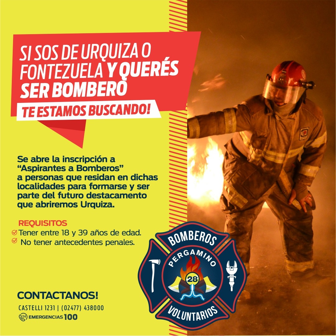 Desde Bomberos Voluntarios Pergamino informaron que se encuentra abierta la inscripción para los cursos de Bomberos para el próximo periodo. Además, informaron que están trabajando con la Cooperativa de Urquiza para poner en funcionamiento un cuartel en la localidad.
